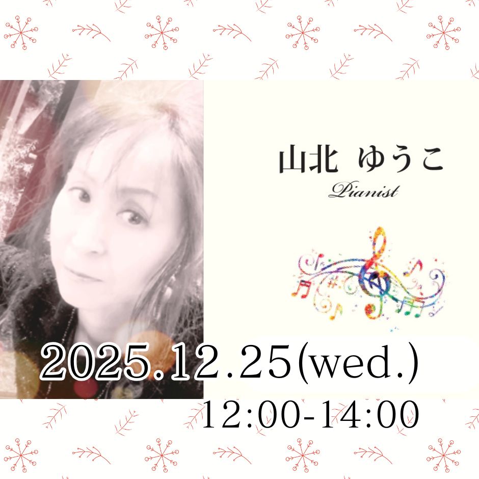 12月20日(土)12:00-14:00 next stage 12月24日(水)【出演者】山北ゆうこ(piano) 【Charge Free】チップ制 お食事を楽しみながら、お気軽に演奏をお楽しみいただけます。ぜひ皆様でお越しくださいませ!