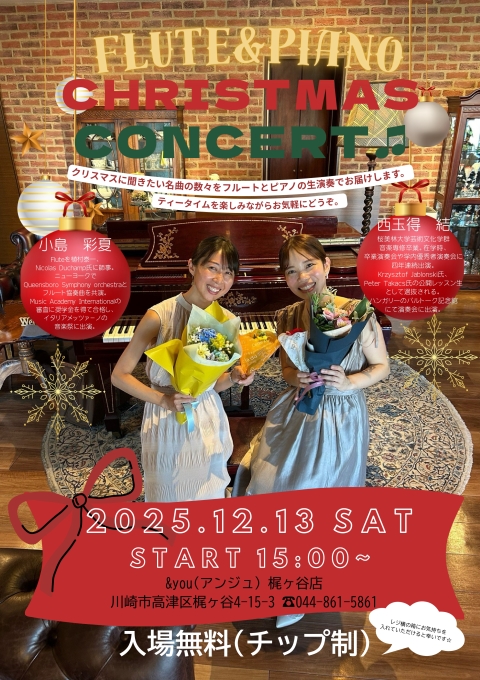 12月13日(土)[ティータイム] FLUTE&PIANO -CHRISTMAS CONCERT♪-
