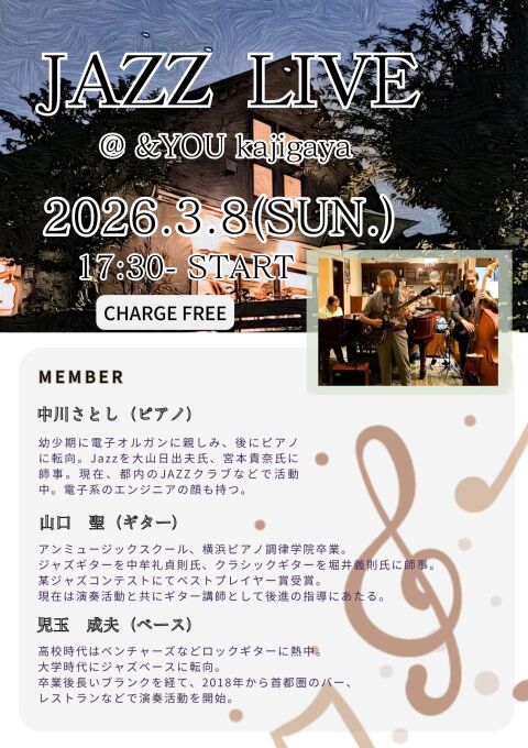 3月8日(日)[ディナータイム] JAZZ LIVE